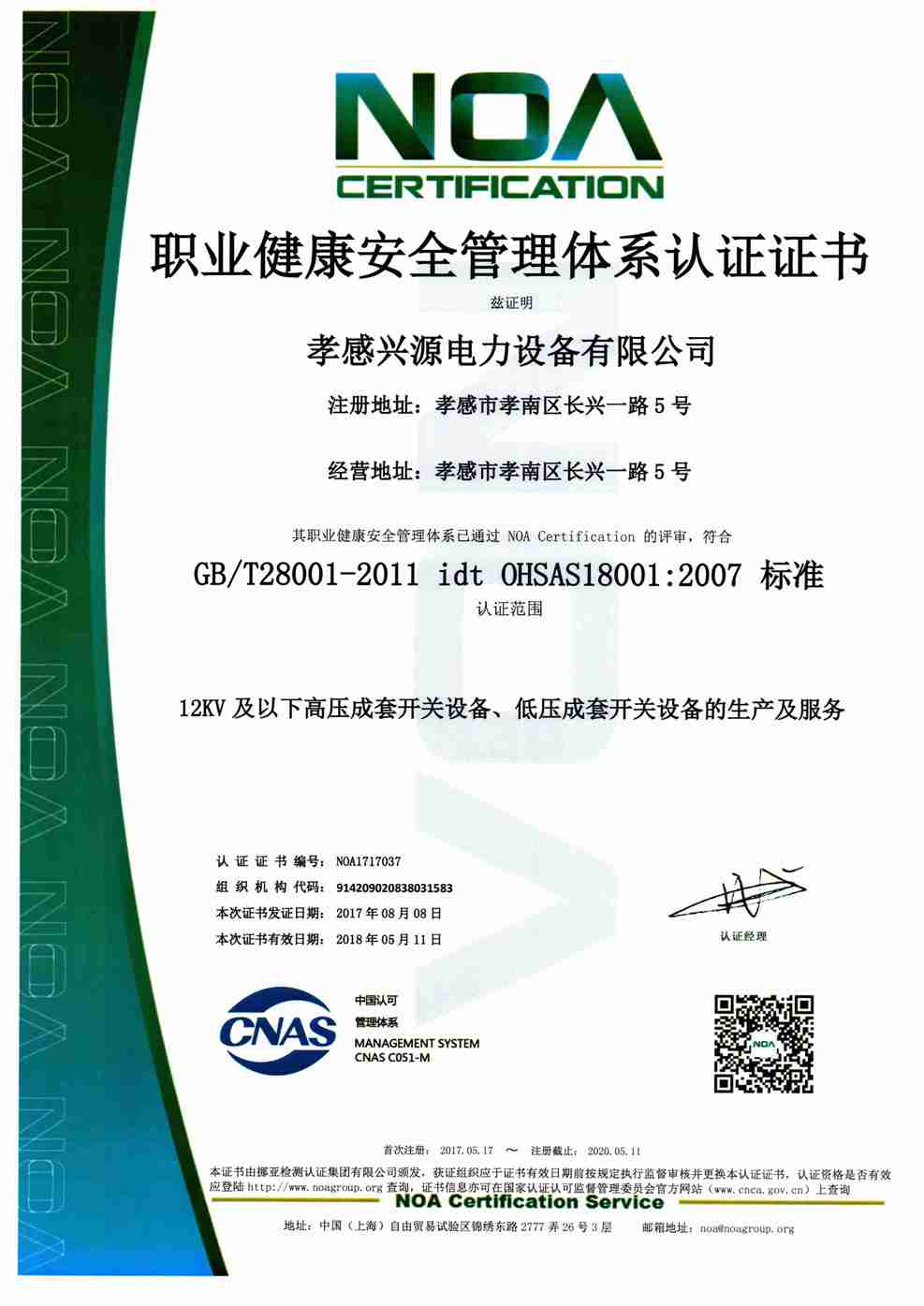 職業(yè)健康管理體系證書